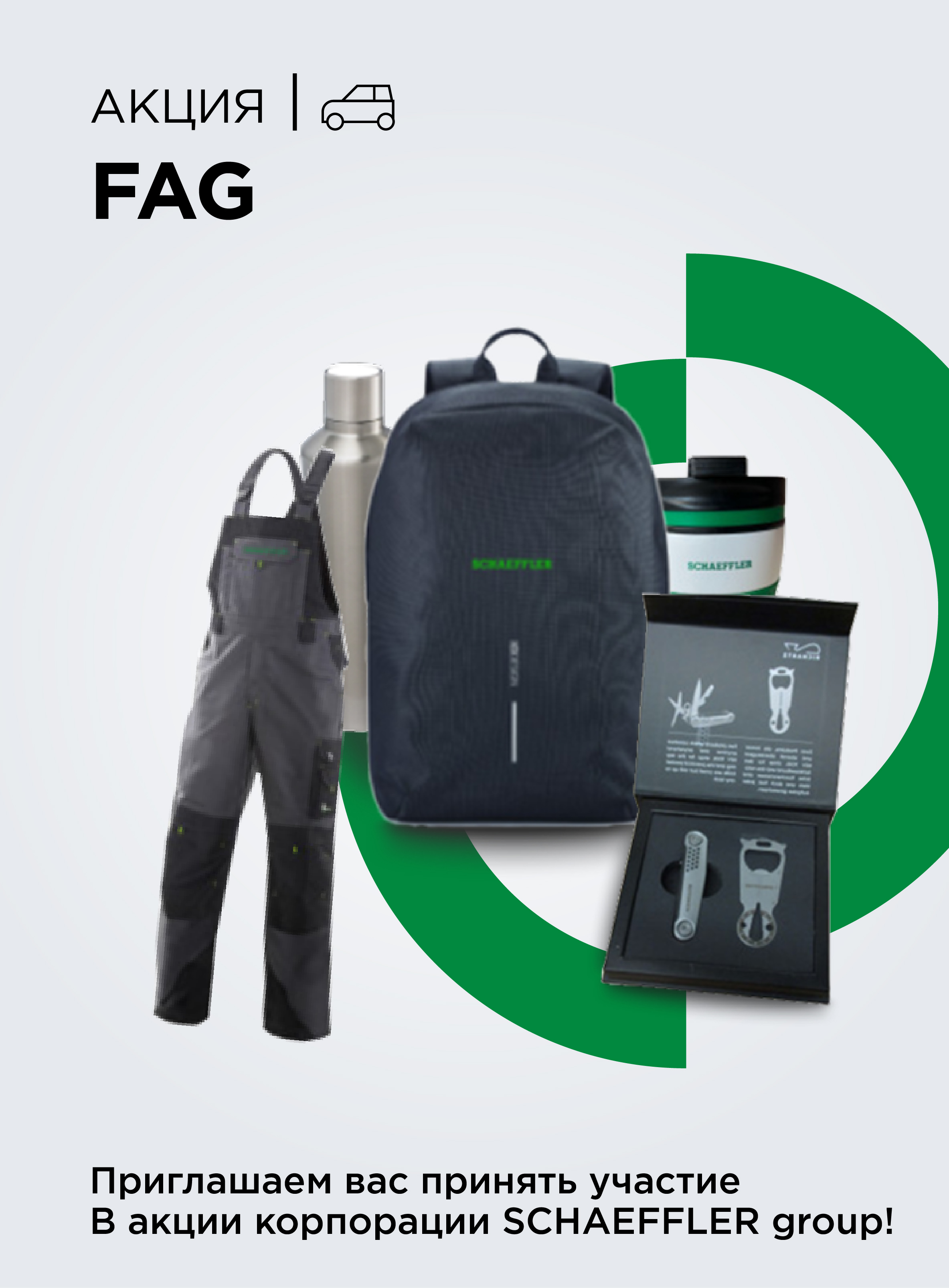 Уважаемые клиенты, приглашаем вас принять участие в акции корпорации SCHAEFFLER Group! Покупайте запчасти бренда FAG в период акции и получайте брендированные призы*!