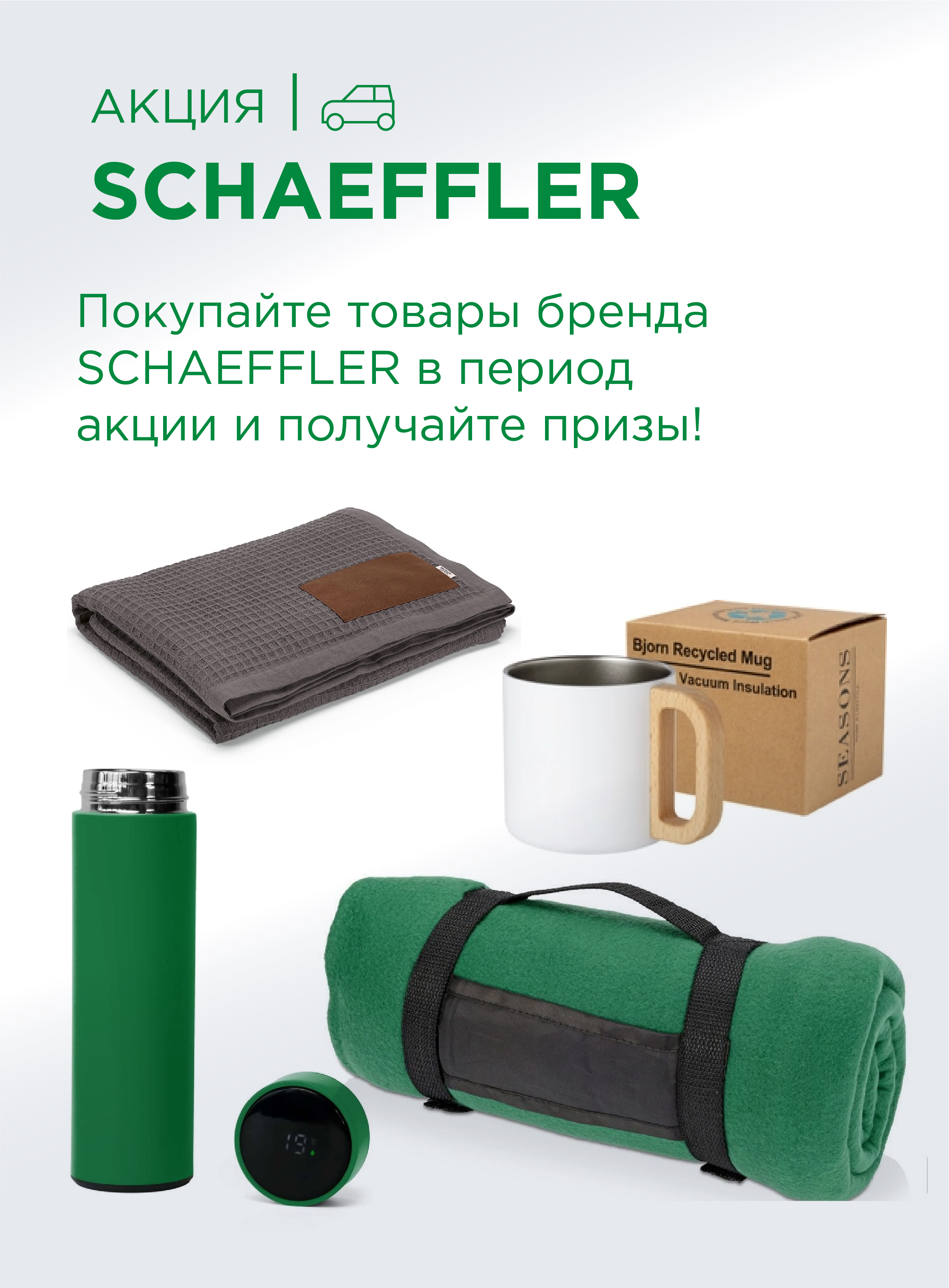 При покупке продукции SCHAEFFLER в период акции на сумму от 100 000 KZT вы получаете в подарок термокружку. При покупке продукции SCHAEFFLER в период акции на сумму от 300 000 KZT вы получаете в подарок термокружку и плед. При покупке продукции SCHAEFFLER в период акции на сумму от 500 000 KZT вы получаете в подарок термокружку, плед и футболку. Дополнительные призы: при покупке продукции товарной группы "Детали ГРМ" на сумму от 50 000 KZT вы получаете в подарок термокружку. Внешний вид призов может отличаться от представленных изображений. В акции могут принять участие все клиенты компании за исключением типа клиента "интернет-магазин".